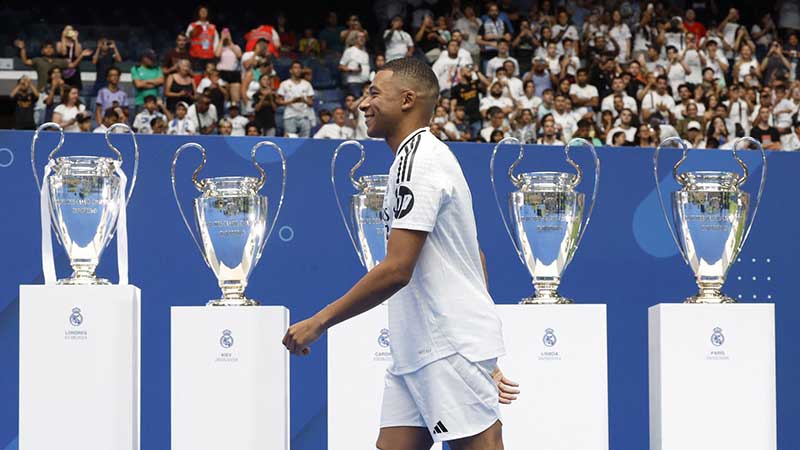Luego de concluir su participación con la selección de Francia en la Eurocopa 2024, Kylian Mbappé fue presentado de manera oficial con el Real Madrid ante un Santiago Bernabéu que fue abarrotado para presenciar a su más reciente fichaje y nuevo ‘9’ del equipo blanco.
