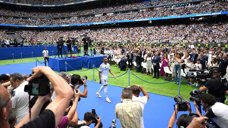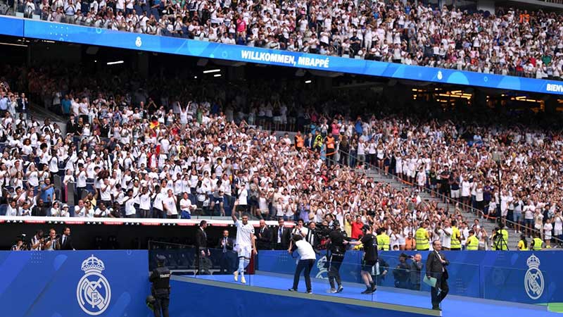 Entre aficionados, prensa, directivos y socios del club, se estima que hubo poco más de 80 mil personas presentes para ver las primeras imágenes de Kylian Mbappé con la camiseta blanca, logrando algo similar a cuando fue la presentación de Cristiano Ronaldo en 2009.