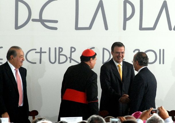 En la mesa principal se encontraban también el empresario Carlos Slim y el arzobispo primado de México, Norberto Rivera, entre otras personalidades.