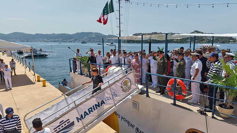 La Presidenta Claudia Sheinbaum Pardo encabezó la inauguración, abanderamiento y toma de protesta de la tripulación del Marinabús de Acapulco, el cual, aseguró, da muestra de que el puerto está vivo, fuerte y lleno de futuro gracias a la unión que hay entre el pueblo y el Gobierno de México.
