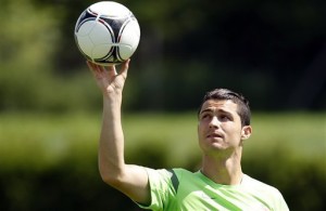 Donestk, Ucrania, 26 de Junio de 2012.- Cristiano Ronaldo y Portugal retaran manana a Espana, actual campeon de Europa y del Mundo, en el Donbass Arena de Donestk por un puesto en la final de la Eurocopa 2012, en un duelo entre el fino estilo y la posesion de la pelota de la 'Roja', y el futbol vertical y vertiginoso del combinado luso.