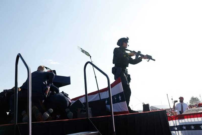El precandidato republicano y expresidente de EU, Donald Trump fue evacuado del mitin que ofrecía en la tarde de este sábado en Butler, Pensilvania, después de que se escucharan tiros en lugar y que al parecer lo alcanzaron a herir.