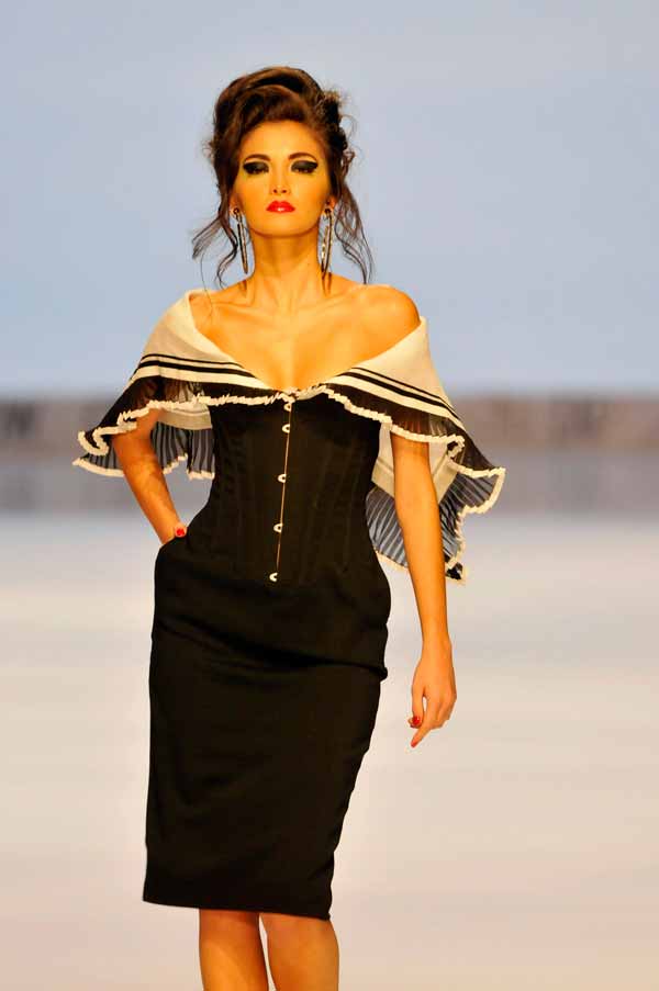 El universo creativo de la alta costura francesa representada por Jean-Paul Gaultier invitó hoy a viajar por una travesía variopinta de corsés, rayas marineras, transparencias y una amplia gama de colores, en una retrospectiva del trabajo más reciente que revivió sobre la pasarela del Cali Exposhow.