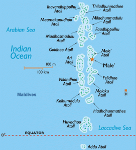 La República de Maldivas es un país insular, situado en pleno océano Índico, unos 675 kilómetros al suroeste de Sri Lanka.