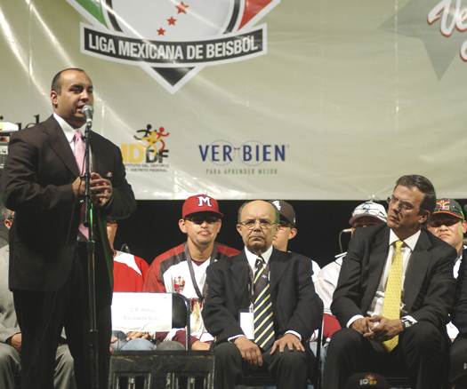 Marcelo Ebrard jefe de gobierno del Distrito Federal, resalto la importancia de la práctica del deporte dentro de la niñez capitalina y deseo suerte a los 16 equipos, pero no pudo evitar la emoción de felicitar a los Diablos Rojos el equipo más querido de los capitalinos.