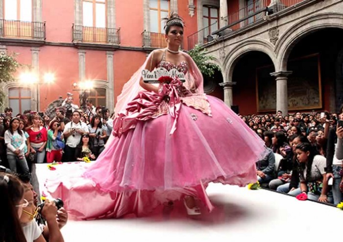 En el Museo de la Ciudad, comercios de La Lagunilla presentaron los vestidos que podrán elegir las quinceañeras del Instituto de la Juventud del Distrito Federal (InjuveDF).