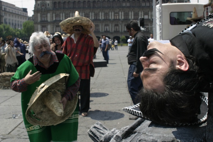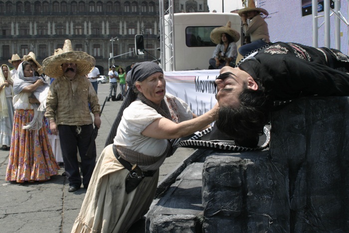 La Obra "Zapata Vive" se está presentando  en el zócalo capitalino. Esta obra de teatro es realizada porel Movimiento de Regeneración Nacional (MORENA) Cuauhtémoc.